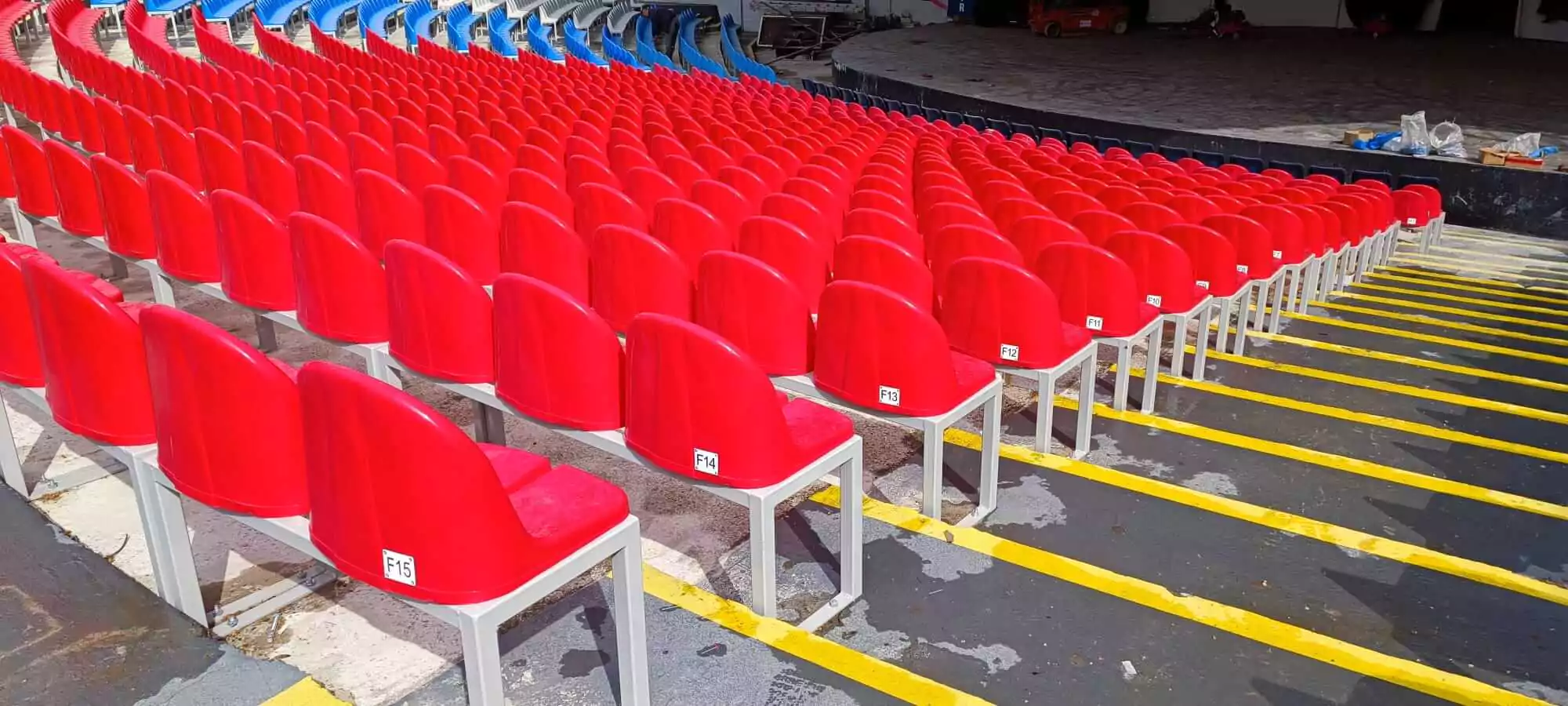 Uzun ömürlü, dayanıklı stadyum koltukları.