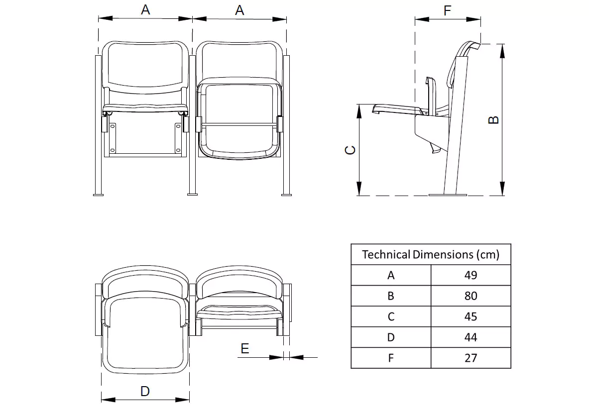Geniş oturma alanı ve ergonomik sırt yapısıyla seyirci konforunu ön plana çıkaran bu model, aynı zamanda sessiz ve hızlı kapanan oturağıyla fonksiyonellik sunar. Malzeme kalitesi ve UV katkıları sayesinde uzun ömürlü kullanım sağlar. Çok amaçlı spor salonları ve açık hava stadyumlarında tercih edilmektedir.